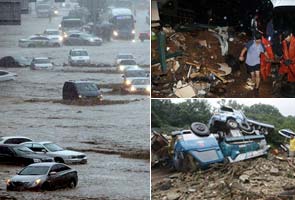 Seoul: A blast of heavy rain sent landslides barreling through South Korea's capital and a northern town Wednesday, killing at least 32 people, including 10 college students doing volunteer work.