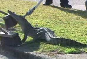 A motorist first spotted the crocodile as it wandered onto a road.