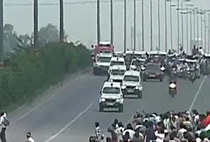 Gurgaon: The Delhi-Gurgaon Expressway is blocked with Anna Hazare's supporters.