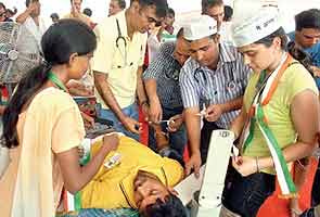 New Delhi: The Ramlila Maidan witnessed five people suffering heart attacks within a short span of three hours. The India Against Corruption medical camp has registered nine cases of heart attacks in till now. Dr. Sanjeev Chhiber, who is a senior cancer specialist and is leading the team of doctors at the camp said, "Five patients had suffered heart attacks in Ramlila Maidan today and we treated them immediately and subsequently sent them to LNJP Hospital for further care."