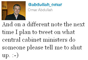 When that post turned into a headline on many TV channels, Omar Abdullah took to Twitter again. "And on a different note the next time I plan to tweet on what central cabinet ministers do, someone please tell me to shut up :-)"