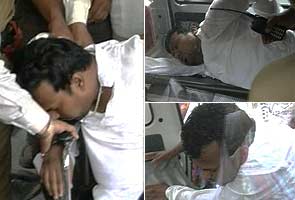 Mr Hindustani was arrested in July for helping to bribe three BJP MPs to support the government in a trust vote in 2008. After he crumpled to the ground, wincing in pain, he was seated in a wheelchair and taken to a nearby hospital.