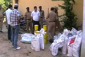 Rewa: Explosives have been recovered by the Madhya Pradesh police after they raided a house in Rewa following a tip-off this afternoon. Three sacks of detonators and 12 sacks of explosives have been recovered in the raid.