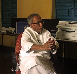 Pranab Mukherjee: I don't look at it from that point of view. It's a part of our family tradition. Moreover, as a village boy I grew up in this atmosphere, up to my graduation. For 20-21 yrs of my formative stage I lived in this atmosphere. I studied at the high school. If you walk from this place to my school it will be about 5 kms. Every day we had to commute this. I used to identify every tree, every turn. We used to commute through the paddy fields. There was no road, not even a kachcha road. I grew up in this area, in this atmosphere up to my graduation. I studied in the district college. Except for the summer vacation and Puja vacation I used to come. District college is almost in the village atmosphere. Therefore I grew up in this atmosphere. So whenever I come it is not merely to meet some relatives or do some rituals. In one way I rediscover myself. I find my roots.