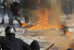 Police and rioters held running battles through the narrow streets of central Athens, as thick black smoke from burning trash and bus-stops set ablaze filled the city's skyline and obscured its ancient monuments.