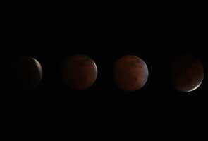 New Delhi: The moon's bright white glow turned into coppery, luminescent orange as the lunar surface was completely covered by the earth's shadow during the last total lunar eclipse of this year.